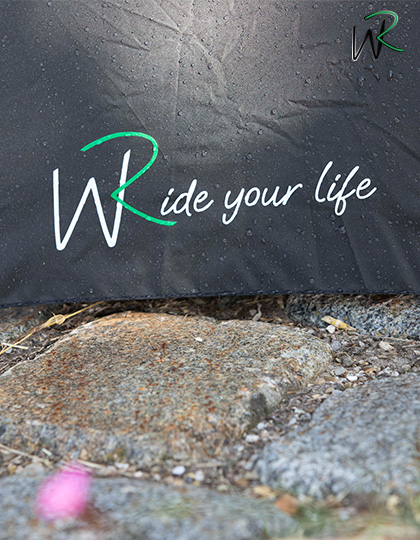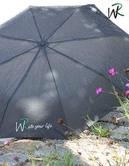 Der Schirm ist 2-farbig bedruckt mit dem Schriftzug „Ride your life“ auf zwei gegenüberliegenden Segmenten, perfekt sichtbar beim Tragen. Dank der Doppelautomatik-Funktion lässt sich der Schirm schnell öffnen und schließen, während das Windproof-System selbst bei kräftigen Böen maximale Stabilität bietet.